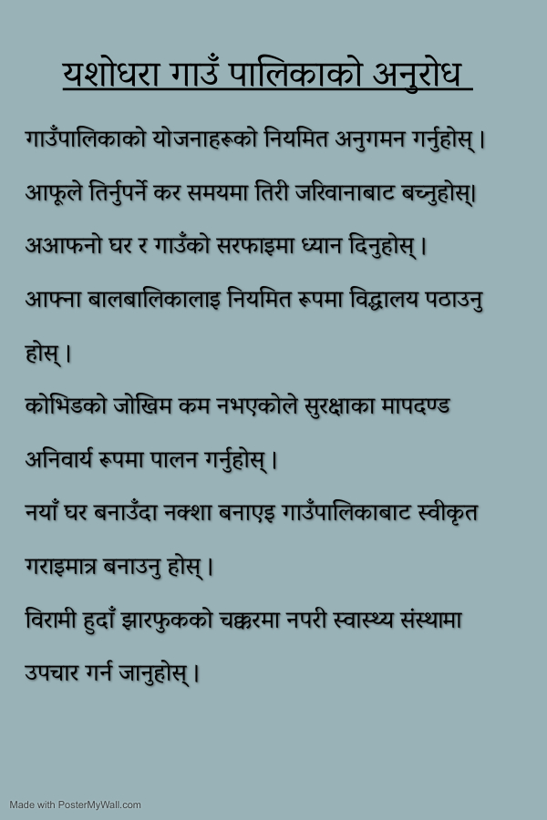 शुद्धोधन गाउँपालिका वडा नं. ४ को अनुरोध ।