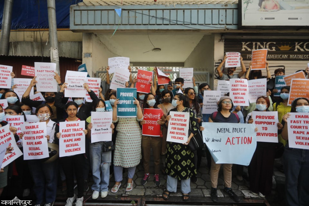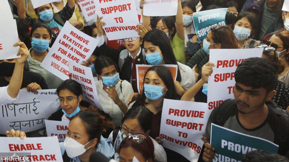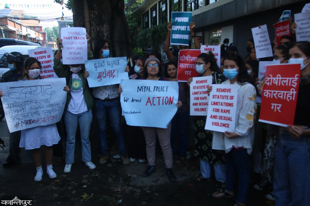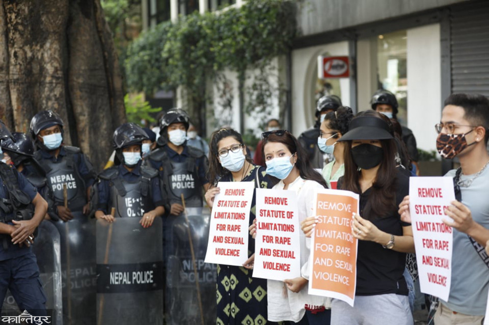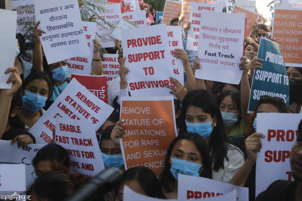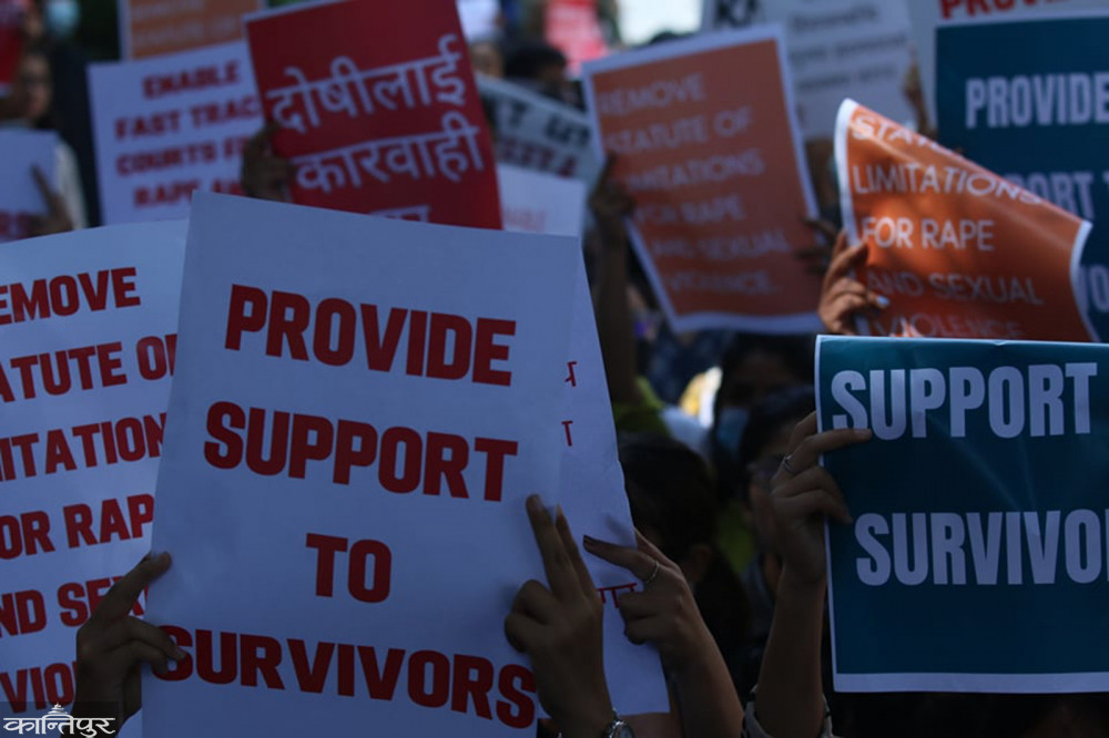 प्रदर्शनकारीहरूले ‘बलात्कार पीडितलाई न्याय दे’‚ ‘दोषीलाई सजाय दे’ लगायत नारा लगाएका थिए । मुलुकी ऐनमा बलात्कारविरुद्ध उजुरी गर्न एकवर्षे हदम्याद तोकिएको छ ।