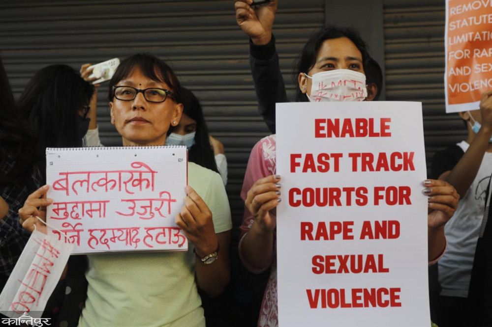 प्रदर्शनकारीहरूले बलात्कार र अन्य यौनजन्य हिंसासम्बन्धी उजुरी गर्ने हदम्याद हटाउनुपर्ने‚ बलात्कार र यौनजन्य हिंसाका मुद्दाहरूको निर्णय गर्न ‘फास्ट ट्र्याक’ अदालतको स्थापना गर्नुपर्नेलगायत माग गर्दै प्रदर्शन गरेका हुन् ।